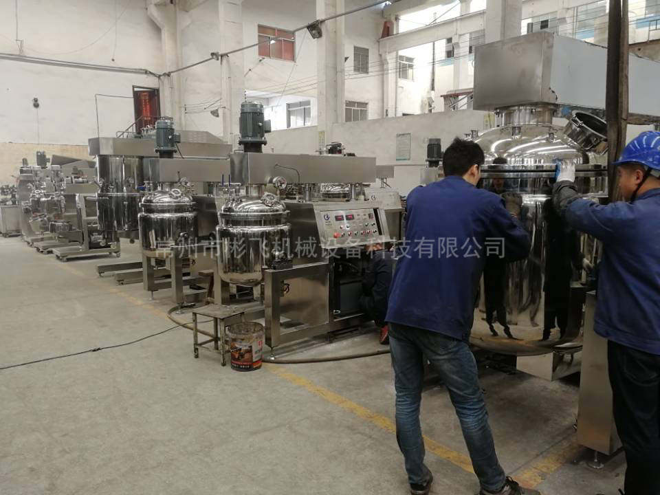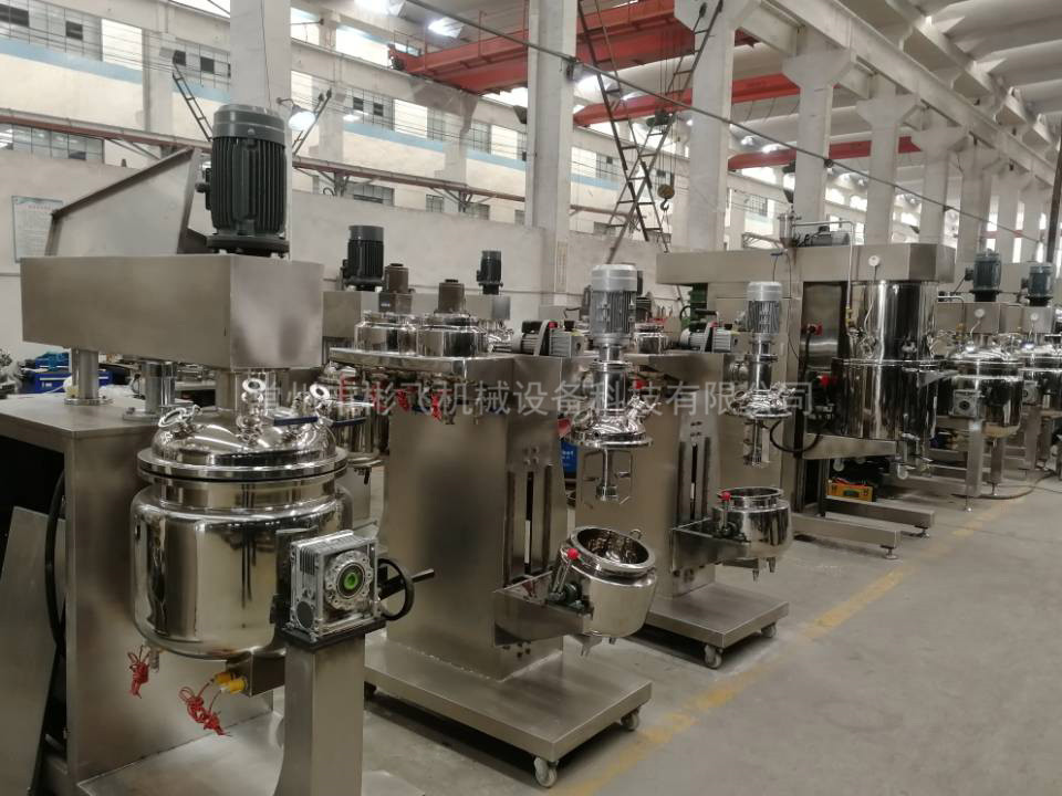 ����� �������Ƴ������������ �������Ƴ������������ �������Ƴ������������ �������Ƴ�������    物料在����� �������Ƴ������������ �������Ƴ������������ �������Ƴ������������ �������Ƴ�������水锅、油锅内通过加热、搅拌进行混合反应后,����� �������Ƴ������������ �������Ƴ����������� �������Ƴ������������ �������Ƴ������由真空泵吸入乳化锅,通过乳化锅内上部����� �������Ƴ������������ �������Ƴ������������ �������Ƴ������������ �������Ƴ������的中心搅拌、聚四氟乙烯刮板始����� �������Ƴ������������ �������Ƴ������������ �������Ƴ������������ �������Ƴ������终迎合搅拌锅形体,扫净挂壁粘料,使被����� �������Ƴ������������ �������Ƴ������������ �������Ƴ������������ �������Ƴ�������刮取的物料不断产生新界面,再经过叶片的剪断、压����� �������Ƴ������������ �������Ƴ������������ �������Ƴ������������ �������Ƴ�������缩、折叠,使其搅拌、混合而向下流往锅体下方����� �������Ƴ������������ �������Ƴ������������ �������Ƴ������������ �������Ƴ�������的均质器处,物料再通过高速旋转����� �������Ƴ����������� �������Ƴ������������ �������Ƴ������������ �������Ƴ�������的切割轮与固定的切割套之间所产生的强力����� �������Ƴ������������ �������Ƴ������������ �������Ƴ������������ �������Ƴ�������的剪断、冲击、乱流等过程,物料在剪切缝中被切割����� �������Ƴ������������ �������Ƴ������������ �������Ƴ����������� �������Ƴ�������,迅速破碎成200um-0.2um的微����� �������Ƴ������������ �������Ƴ������������ �������Ƴ����������� �������Ƴ�������粒,由于乳化锅内处于真空状态,物料在搅拌过程中产����� �������Ƴ������������ �������Ƴ������������ �������Ƴ����������� �������Ƴ�������生的气泡被及时抽走。采用抽真空的方式,����� �������Ƴ������������ �������Ƴ������������ �������Ƴ������������ �������Ƴ�������使所生产的制品在搅拌过程中不再混����� �������Ƴ������������ �������Ƴ����������� �������Ƴ������������ �������Ƴ�������入气泡,从而保证可制造出富有光����� �������Ƴ������������ �������Ƴ������������ �������Ƴ������������ �������Ƴ�������泽、细腻及延展性良好的产品。